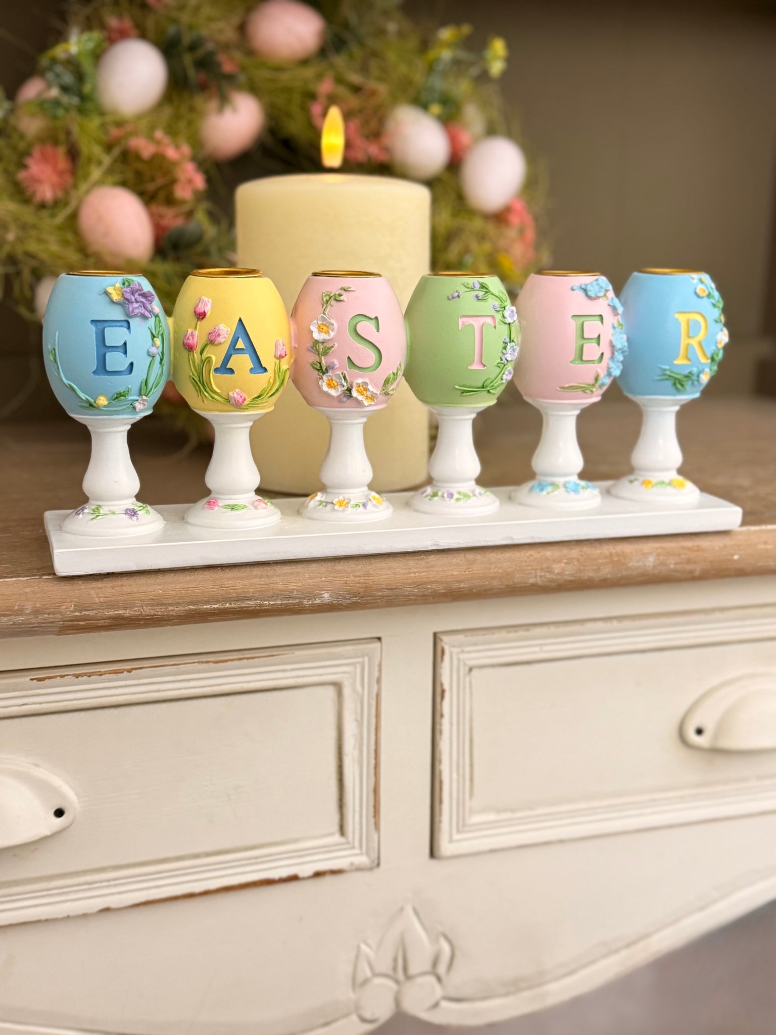 イギリスの雑貨屋さんで見つけた、イースターエッグがモチーフのキャンドルホルダー。