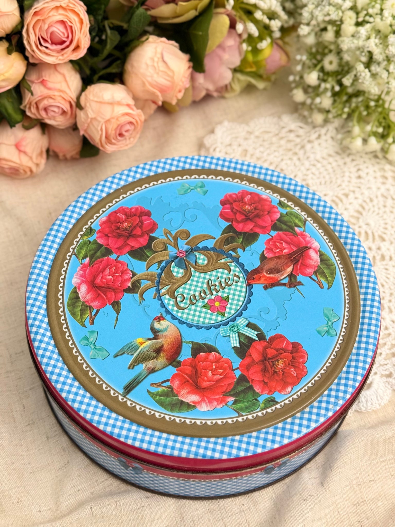 【ヴィンテージ缶】 ロビン ギンガムチェック クッキー缶