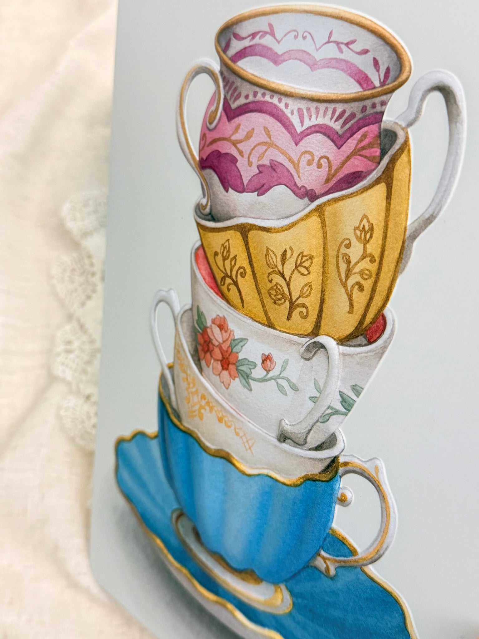 色とりどりのカップが重ねられたデザインが美しく、ディスプレイにも最適です。