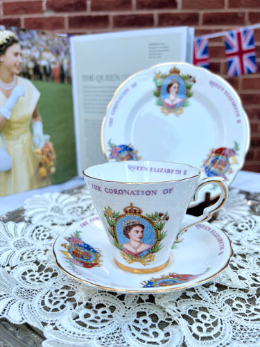 レア! エリザベス女王 コロネーション記念 3点セット(カップ1個、ソーサー1枚、小皿1枚)
