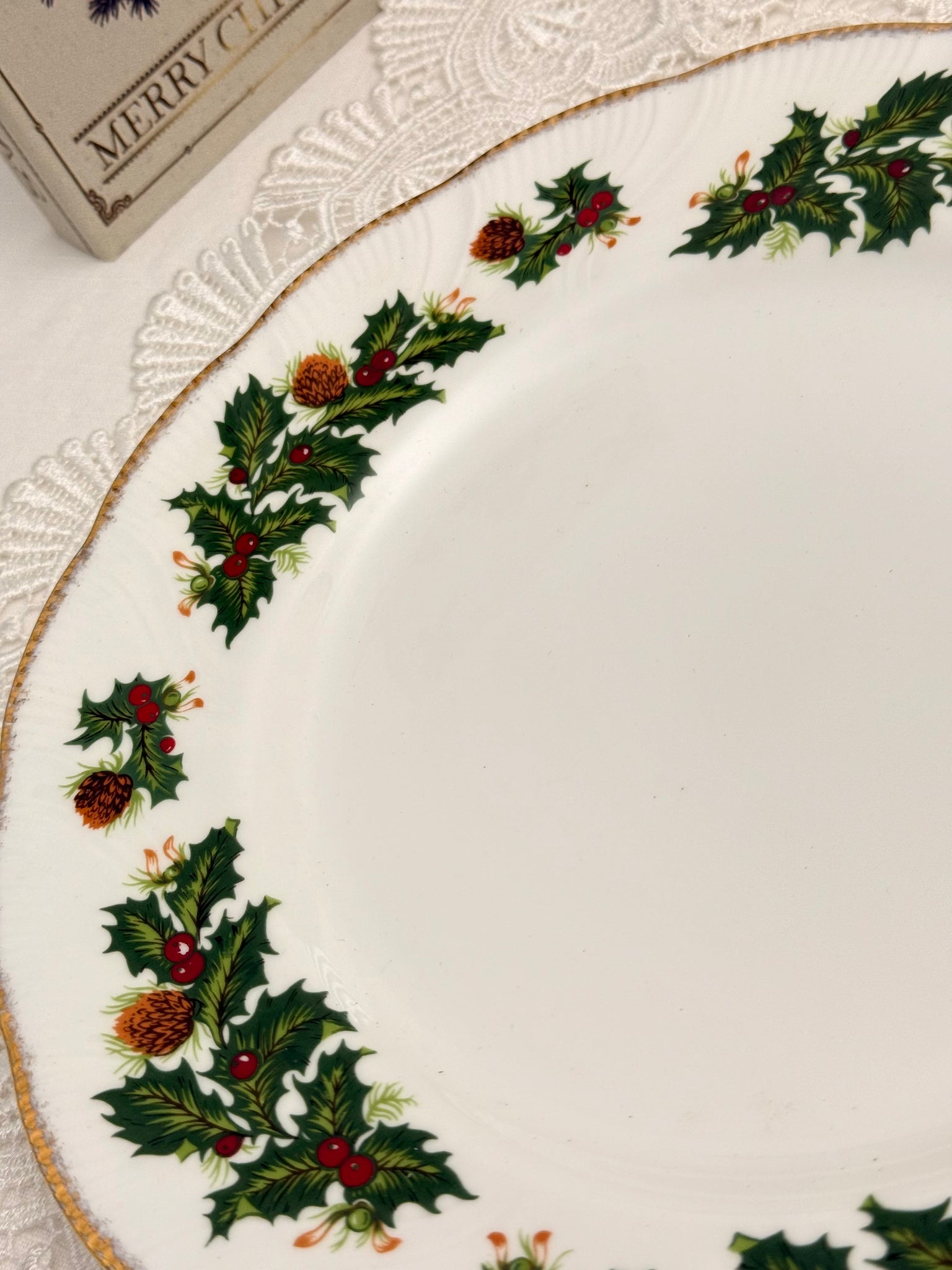 縁にぐるりと描かれたヒイラギが印象的なクリスマス用のヴィンテージ皿。