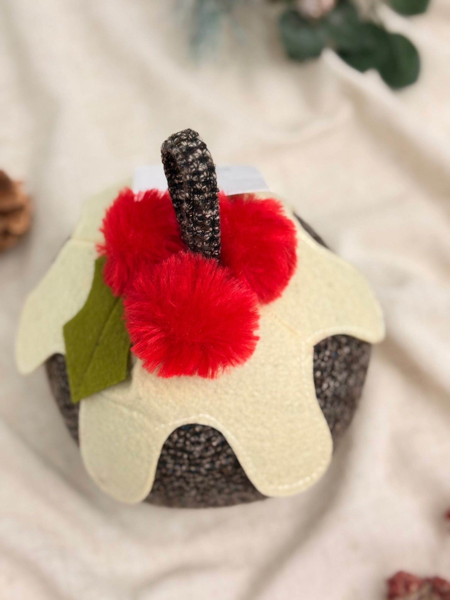 プディングの粒々の質感が英国らしいツイードで表現されています。