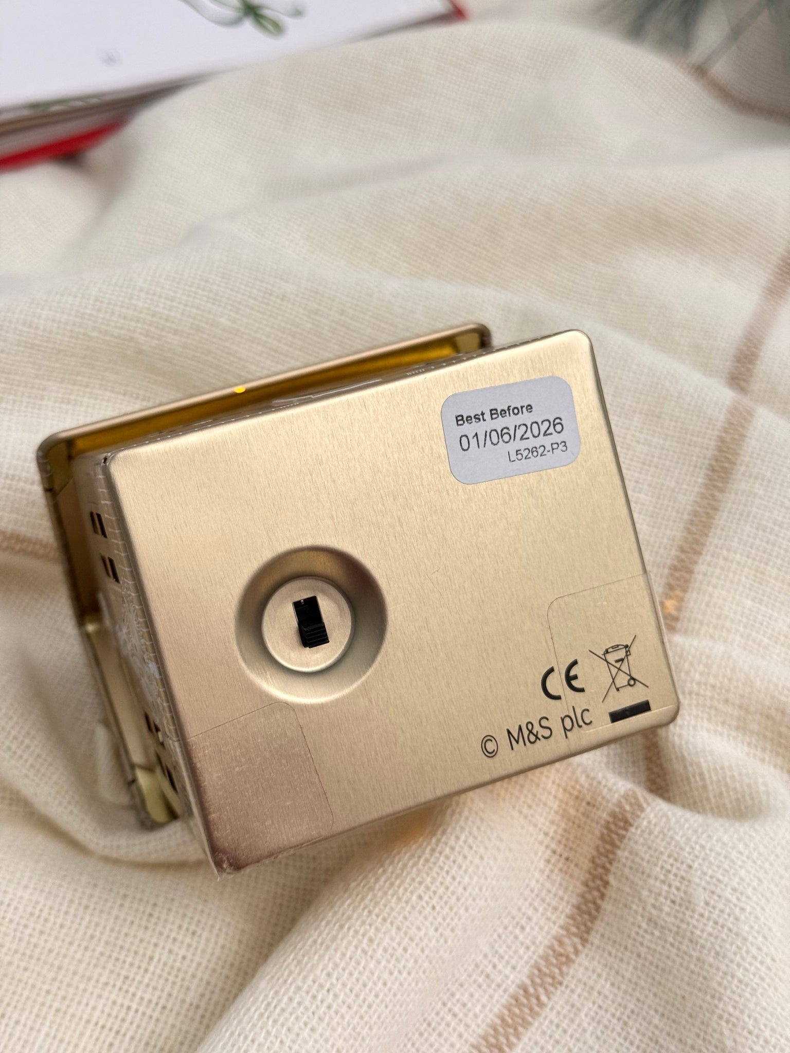 毎年M&Sから発売されるクリスマス限定の缶。2025年は珍しいミニサイズが登場!