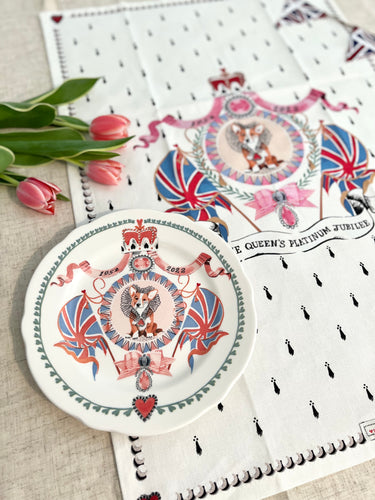 プラチナジュビリー 2枚組 ティータオル(コーギー柄+ティータイム柄)