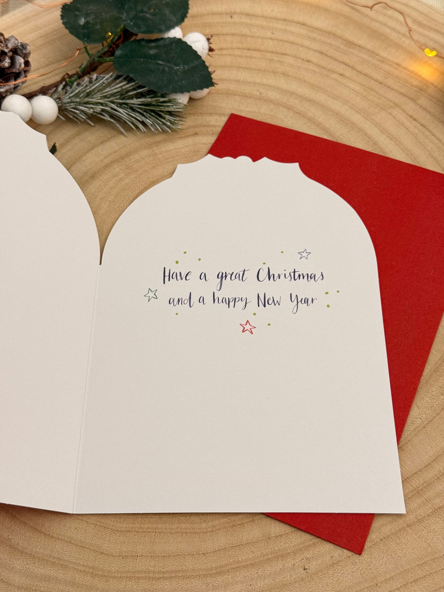 クリスマスには欠かすことのできない英国伝統デザート、クリスマスプディング がおしゃれに描かれたカード