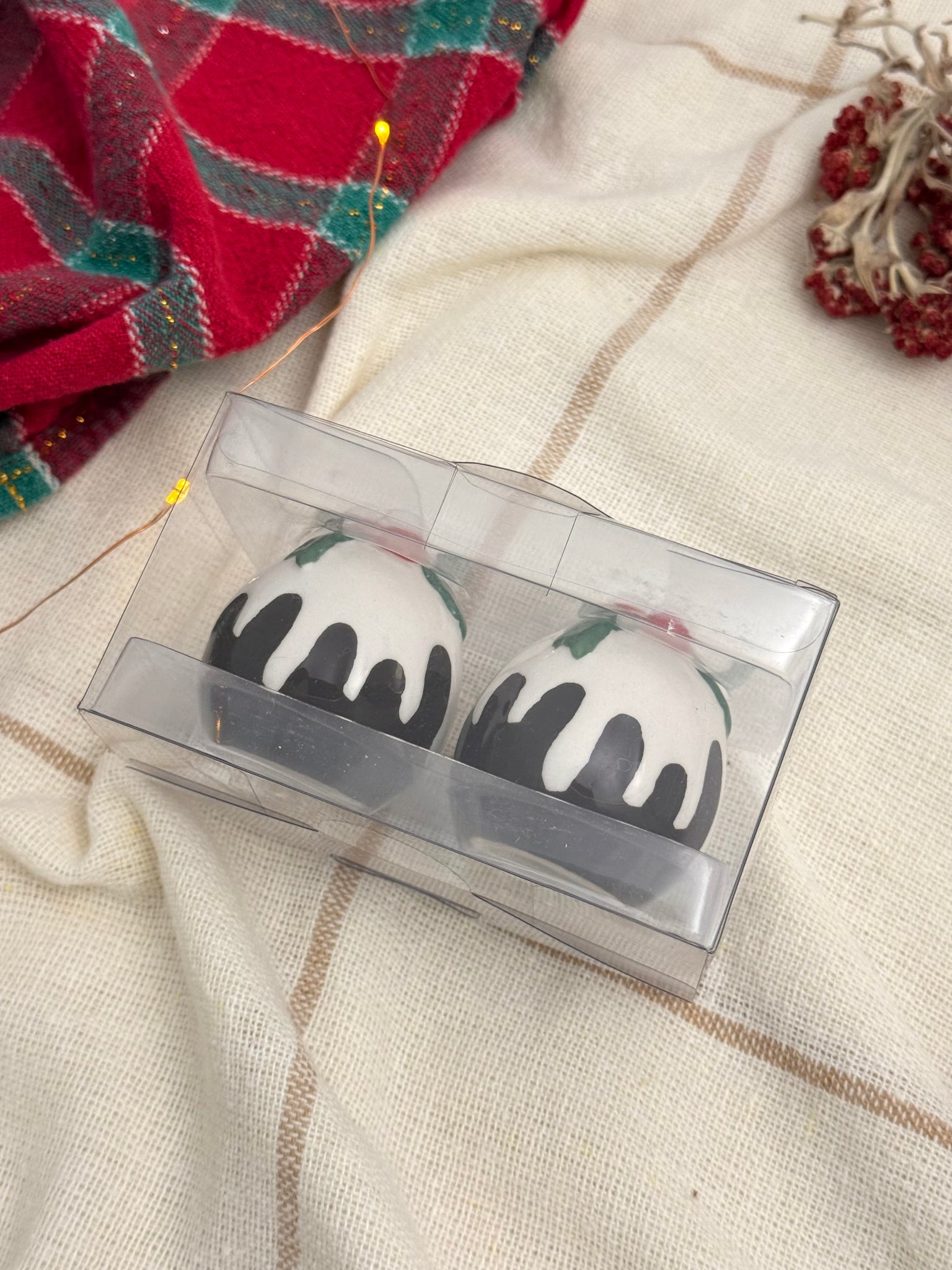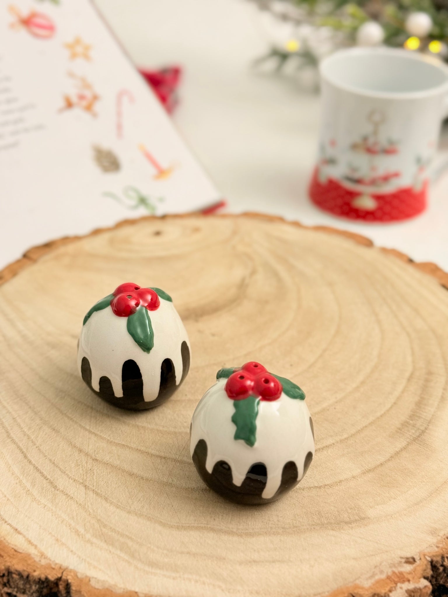 英国を代表するクリスマス菓子「クリスマスプディング」の形をした塩胡椒入れ。
