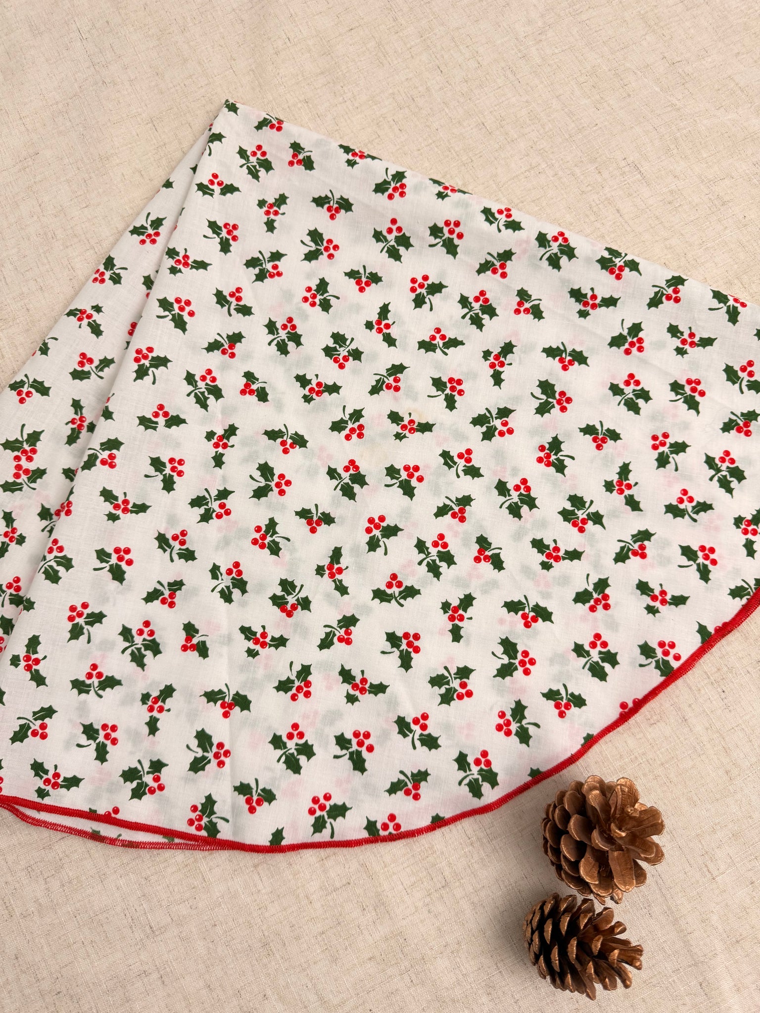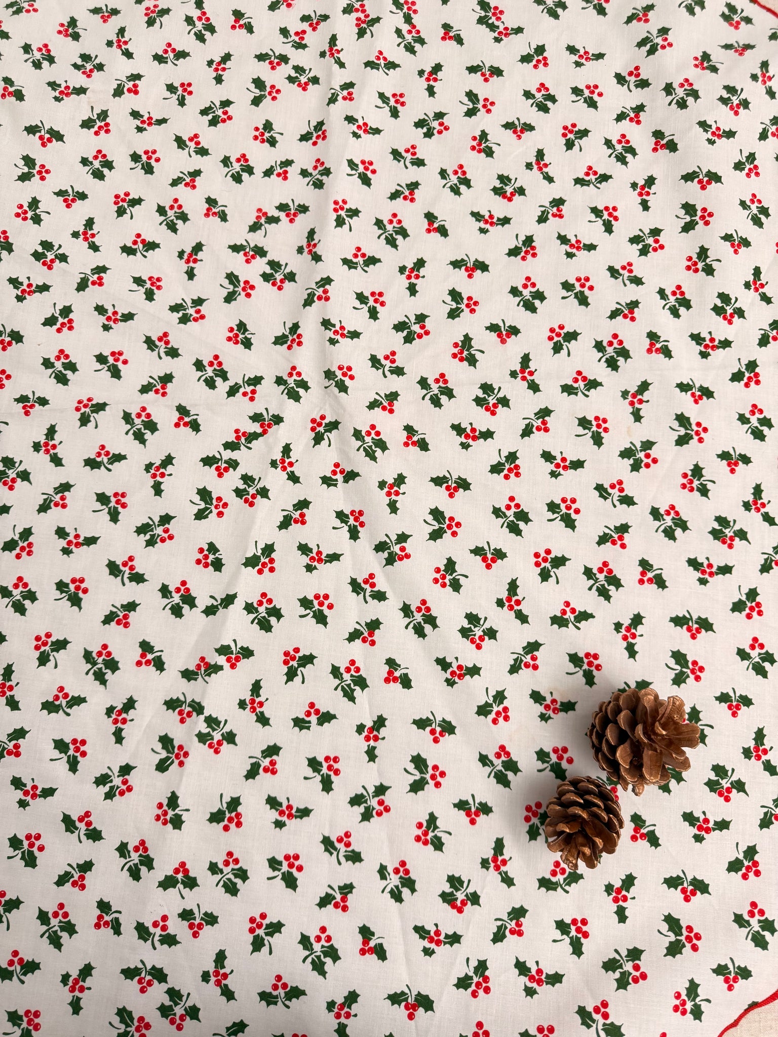 レトロなクリスマスヴィンテージ テーブルクロスヒイラギが散りばめられたとても可愛らしい柄です。