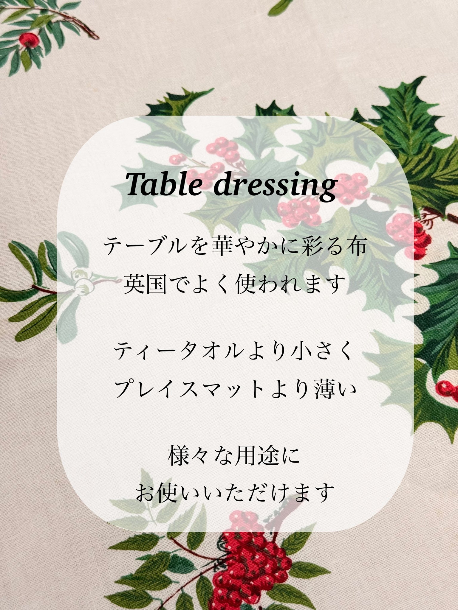 *テーブルドレッシングとは、英国でテーブルを華やかにするために使われる布。